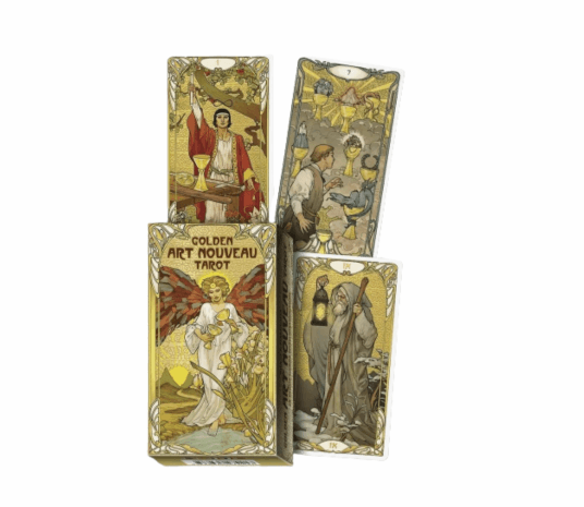 El Tarot Golden Art Nouveau de Lo Scarabeo es una reinterpretación del tarot clásico con un estilo artístico inspirado en el modernismo, donde los detalles dorados y las ilustraciones refinadas convierten cada carta en una obra de arte.