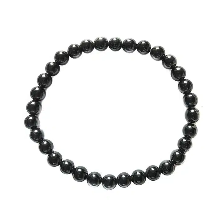 Pulsera de Obsidiana Negra · Bola Lisa 6mm · Elástica